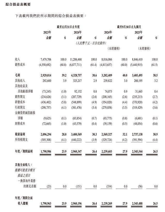 2025年前三季度,公司实现收入为88.46亿元,同比增长10.36%;期间溢利为23.46亿元,同比增长4.73%。
